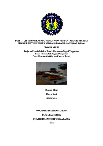 Apriliani, Ifa (2018) SUBSTITUSI TEPUNG KACANG MERAH PADA PEMBUATAN PUFF MR.BEAN SEBAGAI INOVASI PRODUK BERBASIS KACANG-KACANGAN LOKAL. D3 thesis, Fakultas Teknik.