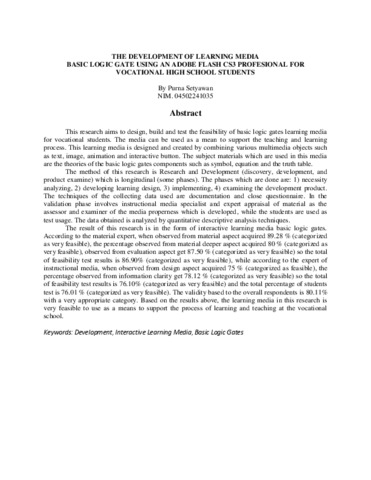 Setyawan, Purna (2011) THE DEVELOPMENT OF LEARNING MEDIA BASIC LOGIC GATE USING AN ADOBE FLASH CS3 PROFESIONAL FOR VOCATIONAL HIGH SCHOOL STUDENTS. S1 thesis, Universitas Negeri Yogyakarta.