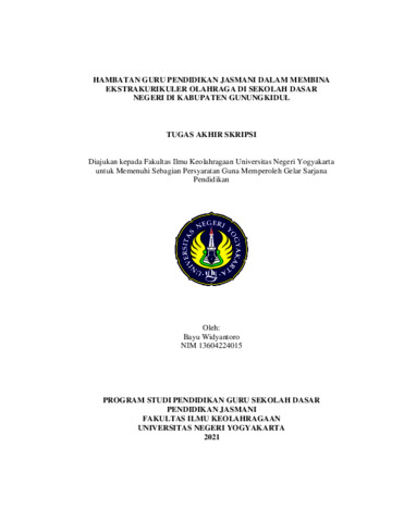 Widyantoro, Bayu (2021) HAMBATAN GURU PENDIDIKAN JASMANI DALAM MEMBINA EKSTRAKURIKULER OLAHRAGA DI SEKOLAH DASAR NEGERI DI KABUPATEN GUNUNGKIDUL. S1 thesis, Fakultas Ilmu Keolahragaan.