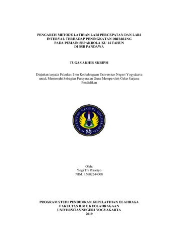 Prasetyo, Yogi Tri (2019) PENGARUH METODE LATIHAN LARI PERCEPATAN DAN LARI INTERVAL TERHADAP PENINGKATAN DRIBBLING PADA PEMAIN SEPAKBOLA KU 14 TAHUN DI SSB PANDAWA. S1 thesis, Fakultas Ilmu Keolahragaan.