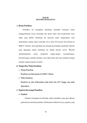 Penelitian ini bertujuan untuk mendeskripsikan: (1) sikap wirausaha siswa kelas XI Jurusan Tata Busana di SMK N 3 Klaten, dan (2) sikap wirausaha siswa kelas XI Jurusan Tata Busana di SMK N 3 Klaten ditinjau dari adanya rasa percaya diri, berorientasi tugas dan hasil, berani mengambil resiko, berjiwa kepemimpinan, keorisinilan, dan berorientasi ke masa depan. Penelitian ini merupakan penelitian deskriptif dengan pendekatan kuantitatif. Populasi adalah seluruh siswa kelas XI Jurusan Tata Busana di SMK N 3 Klaten sebanyak 176 siswa. Teknik pengambilan sampel menggunakan proporsional random sampling. Sampel adalah siswa kelas XI Jurusan Tata Busana di SMK N 3 Klaten sebanyak 118 siswa. Teknik pengumpulan data menggunakan angket. Teknik analisis data menggunakan analisis deskriptif. Hasil penelitian menunjukkan bahwa (1) Sikap wirausaha siswa kelas XI Jurusan Tata Busana di SMK N 3 Klaten berada pada kategori sangat baik sebanyak 2 siswa (1,69%), berada pada kategori baik sebanyak 109 siswa (92,37%), berada pada kategori kurang baik sebanyak 7 siswa (5,93%), dan tidak ada yang berada pada kategori sangat kurang baik (0,00%). Indikator tertinggi terletak pada indikator percaya diri dengan nilai rata-rata sebesar 28,40; dan indikator terendah terletak pada indikator pengambilan resiko dengan nilai rata-rata 12,74; dan (2) Sikap wirausaha siswa kelas XI Jurusan Tata Busana di SMK N 3 Klaten ditinjau dari indikator percaya diri berada pada kategori baik (76,27%), ditinjau dari indikator berorientasi tugas dan hasil berada pada kategori baik (82,20%), ditinjau dari indikator pengambilan resiko berada pada kategori baik (82,20%), ditinjau dari indikator kepemimpinan berada pada kategori baik (83,90%), ditinjau dari indikator keorisinilan berada pada kategori baik (88,14%), dan ditinjau dari indikator berorientasi ke masa depan berada pada kategori baik (66,95%).