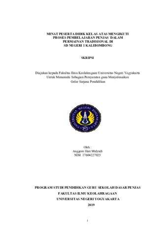 Mulyadi, Anggoro Hari (2019) MINAT PESERTA DIDIK KELAS ATAS MENGIKUTI PROSES PEMBELAJARAN PENJAS DALAM PERMAINAN TRADISIONAL DI SD NEGERI 1 KALIBOMBONG. S1 thesis, Fakultas Ilmu Keolahragaan.