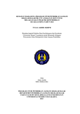 Arifah, Zahra (2023) Kesiapan Mahasiswa Program Studi Pendidkani asmani Sekolah Dasar FIK UNY Angkatan 2019 Untuk Melaksanakan Praktik Kependidikan Secara Luring Tahun 2022. S1 thesis, Fakultas Ilmu Keolahragaan dan Kesehatan.