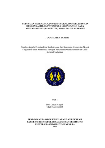 Hubungan Kecepatan, Power Tungkai, dan Kelentukan Dengan Jauh Lompatan Pada Lompat Juah Gaya Menggantung (Hang Style) Siswa MA N 1 Kebumen