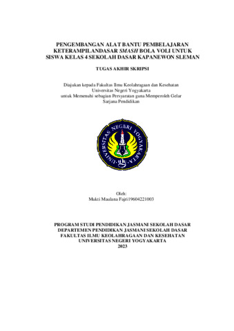 Fajri, Mukti Maulana (2023) Pengembangan Alat Bantu Pembelajaran Keterampilan Dasar Smash Bola Voli Untuk Siswa Kelas 4 Sekolah Dasar Kapanewon Sleman. S1 thesis, Fakultas Ilmu Keolahragaan dan Kesehatan.
