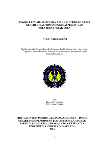 Nugraha, Gusna Abi (2023) Tingkat Pemahaman Siswa Kelas VI Sekolah Dasar Negeri Kejambon 2 Mengenai Permainan Bola Besar Sepak Bola. S1 thesis, Fakultas Ilmu Keolahragaan dan Kesehatan.