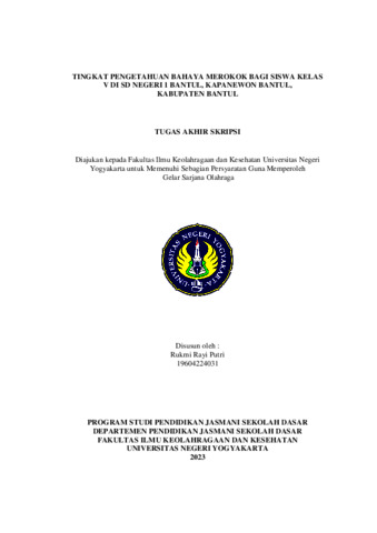 Penelitian ini bertujuan untuk mengetahui seberapa tinggi tingkat pengetahuan bahaya merokok bagi siswa kelas V di SD Negeri 1 Bantul, Kapanewon Bantul, Kabupaten Bantul. Penelitian ini merupakan penelitian deskriptif kuantitatif dengan menggunakan metode survei, teknik pengambilan data menggunakan tes pilihan ganda dan tes menjodohkan. Sampel penelitian dengan 30 siswa kelas V di SD Negeri Bantul Warung. Data yang terkumpul dianalisis dengan teknik statistik deskriptif yang dituangkan dalam bentuk persentase. Hasil penelitian ini menunjukkan bahwa tingkat pengetahuan siswa pada kategori kategori “sangat tinggi” sebesar 0% (0 responden), kategori “tinggi” sebesar 31% (36 responden), kategori “sedang” sebesar 43% (51 responden), kategori “rendah” sebesar 20% (24 responden), dan kategori “sangat rendah” sebesar 6% (7 responden). Dari data tersebut menunjukkan bahwa tingkat pengetahuan bahaya merokok bagi siswa kelas V mayoritas berada dalam kategori “sedang”.
