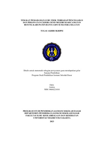 Penelitian ini bertujuan untuk mengetahui seberapa baik tingkat pemahaman guru PJOK terhadap pencegahan dan perawatan cedera di Sekolah Dasar Negeri Se-Kecamatan Betung Kab Banyuasin Sumatera selatan. Penelitian ini merupakan penelitian deskriptif kuantitatif. Metode yang digunakan adalah metode survei. Teknik pengumpulan data merupakan tes soal pilihan ganda. Subjek yang digunakan dalam penelitian ini adalah seluruh guru pendidikan jasmani olahraga dan kesehatan Sekolah Dasar Negeri Se-Kecamatan Betung Kab Banyuasin Sumatera selatan yang berjumlah 26 guru. Teknik analisis data menggunakan teknik deskriptif persentase. Hasil penelitian menunjukkan bahwa pemahaman guru pendidikan jasmani Sekolah Dasar Negeri Se-Kecamatan Betung Kab Banyuasin Sumatera selatan tentang pencegahan dan perawatan cedera masuk dalam kategori sedang. Dengan hasil secara umum sebagai berikut, kategori “sangat tinggi” sebesar 0% (0 guru), kategori “tinggi” 31% (8 guru), kategori “sedang” 38% (10 Guru), Kategori “rendah” 23% (6 Guru), kategori “sangat rendah” 8% (2 guru).