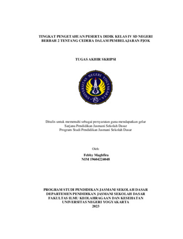 Maghfira, Febby (2023) Tingkat Pengetahuan Peserta Didik Kelas IV SD Negeri Berbah 2 Tentang Cedera Dalam Pembelajaran PJOK. S1 thesis, Fakultas Ilmu Keolahragaan dan Kesehatan.