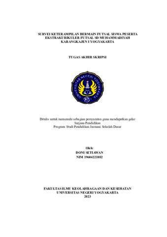 Setiawan, Doni (2023) Survei Keterampilan Bermain Futsal Siswa Peserta Ekstrakurikuler Futsal SD Muhammadiyah Karangkajen I Yogyakarta. S1 thesis, Fakultas Ilmu Keolahragaan dan Kesehatan.