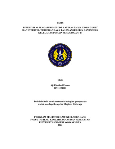 Umam, Aji Khotibul (2023) Pengaruh Metode Latihan Small Sided Games dan Interval terhadap Daya Tahan Anaerobik dan Indeks Kelelahan Pemain Sepakbola U-17. S2 thesis, Fakultas Ilmu Keolahragaan dan Kesehatan.