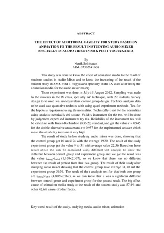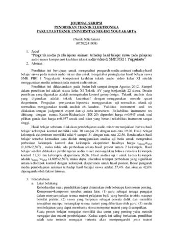Nunik , Solichatun (2012) PENGARUH MEDIA PEMBELAJARAN BERBASIS ANIMASI TERHADAP HASIL BELAJAR SISWA PADA PELAJARAN AUDIO MIXER KOMPETENSI KEAHLIAN TEKNIK AUDIO VIDEO di SMK PIRI 1 YOGYAKARTA. S1 thesis, UNY.