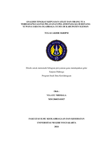 Nirmala, Via Ayu (2024) Analisis Tingkat Kepuasan Atlet dan Orang Tua Terhadap Kualitas Pelayanan Pelatih Pada Klub Renang Yuwana Sarana Olahraga (YUSO) di Kabupaten Sleman. S1 thesis, Fakultas Ilmu Keolahragaan dan Kesehatan.