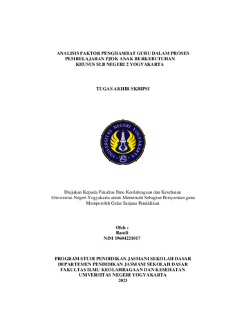 Randi, Randi (2023) Analisis Faktor Penghambat Guru Dalam Proses Pembelajaran PJOK Anak Berkebutuhan Khusus di SLB Negeri 2 Yogyakarta. S1 thesis, Fakultas Ilmu Keolahragaan dan Kesehatan.