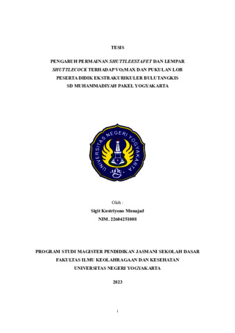 Munajad, Sigit Kustriyono (2023) Pengaruh Permainan Shutlleestafet dan Lempar Shutllecock Terhadap Vo2max dan Pukulan Lob Peserta Didik Ekstrakurikuler Bulutangkis SD Muhammadiyah Pakel Yogyakarta. S2 thesis, Fakultas Ilmu Keolahragaan dan Kesehatan.