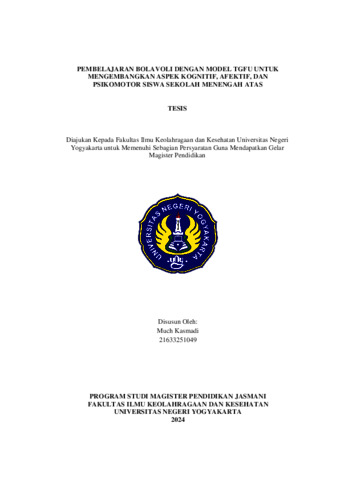 Kasmadi, Much (2024) Pembelajaran Bolavoli dengan Model TGFU Untuk Mengembangkan Aspek Kognitif, Afektif, dan Psikomotor Siswa Sekolah Menengah Atas. S2 thesis, Fakultas Ilmu Keolahragaan dan Kesehatan.