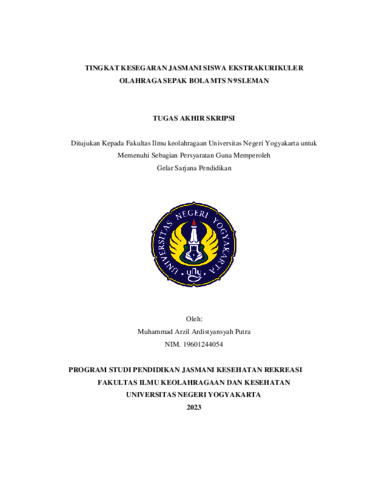 Putra, Muhammad Arzil Ardistyansyah (2024) Tingkat Kesegaran Jasmani Siswa Ekstrakurikuler Olahraga Sepak Bola MTs N 9 Sleman. S1 thesis, Fakultas Ilmu Keolahragaan dan Kesehatan.