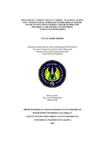 Penelitian ini bertujuan untuk mengetahui pengaruh latihan dengan model Teaching Games For Understanding (TGfU) terhadap peningkatan keterampilan passing siswa peserta ekstrakurikuler sepakbola SMP Negeri 33 Purworejo. Populasi dalam penelitian ini adalah peserta ekstrakurikuler sepakbola di SMP Negeri 33 Purworejo yang berjumlah 20 peserta. Teknik pengumpulan data dalam penelitian ini menggunakan tes dari Arsil (2015). Teknik analisis data dalam penelitian ini menggunakan paired t test dengan signifikansi p <0,005. Berdasarkan hasil penelitian yang diperoleh, dapat diketahui hasil penelitian sebagai berikut: ada pengaruh latihan dengan model TGfU yang signifikan terhadap kemampuan passing dalam teknik dasar sepak bola. Hal ini dibuktikan dengan hasil analisis paired t test yang menunjukkan bahwa didapatkan skor signifikansi 0, 00 atau p <0,05. Adapun perbandingan hasil rata-rata skor antara pre-test dan post-test adalah 1, 15 detik.