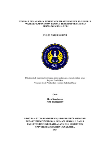 | Uncontrolled Keywords: | tingkat pemahaman, peraturan permainan bola voli, SD Negeri 1 Wijirejo Kapanewon Pandak |