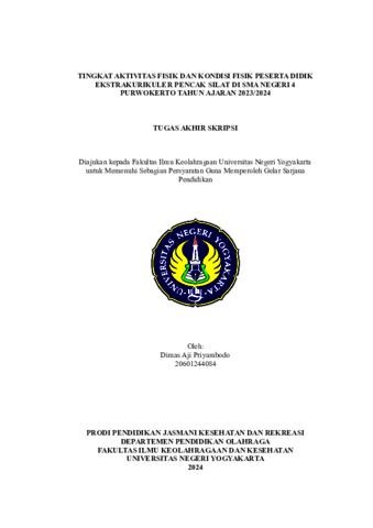 Priyambodo, Dimas Aji (2024) Tingkat Aktivitas Fisik dan Kondisi Fisik Peserta Didik Ekstrakurikuler Pencak Silat di SMA Negeri 4 Purwokerto Tahun Ajaran 2023/2024. S1 thesis, Fakultas Ilmu Keolahragaan dan Kesehatan.