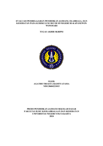 Radityatama, Agatho Triasta (2024) Evaluasi Pembelajaran Pendidikan Jasmani Olahraga dan Kesehatan Pada Kurikulum 2013 Se-Kapanewon Wonosari. S1 thesis, Fakultas Ilmu Keolahragaan dan Kesehatan.