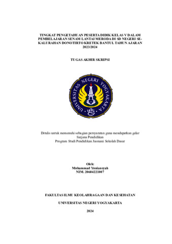 Yuniansyah, Muhammad (2024) Tingkat Pengetahuan Peserta Didik Kelas V Dalam Pembelajaran Senam Lantai Meroda di SD Negeri Se-Kalurahan Donotirto Kretek Bantul Tahun Ajaran 2023/2024. S1 thesis, Fakultas Ilmu Keolahragaan dan Kesehatan.
