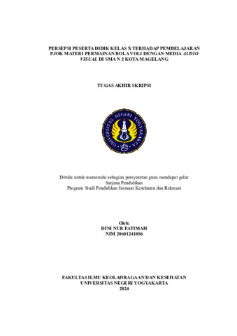 Fatimah, Dini Nur (2024) Persepsi Peserta Didik Kelas X Terhadap Pembelajaran PJOK Materi Permainan Bola Voli Dengan Media Audio Visual di SMA N 2 Kota Magelang. S1 thesis, Fakultas Ilmu Keolahragaan dan Kesehatan.