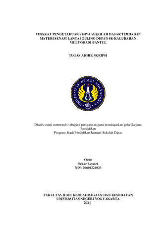 Penelitian ini bertujuan untuk mengetahui seberapa tinggi tingkat pengetahuan senam lantai guling depan siswa sekolah dasar kelas V se-Kalurahan Mulyodadi. Penelitian ini merupakan penelitian yang bersifat deskriptif kuatitatif. Metode yang digunakan dalam penelitian ini adalah survei, instrumen berupa soal pilihan ganda yang berjumlah 20 butir. Subjek yang digunakan dalam penelitian ini adalah siswa kelas V Sekolah Dasar se-Kalurahan Mulyodadi yang berjumlah kurang lebih 25 siswa dalam satu kelas. Teknik analisis data menggunakan deskriptif kuatitatif yang dituangkan pada persentase. Hasil dari penelitian bahwa tingkat pengetahuan senam lantai guling depan siswa Sekolah Dasar Kelas V Se-Kalurahan Mulyodadi yang berkategori sangat baik sebanyak 30 responden (28,3%), kategori baik sebanyak 62 responden (58,5%), kategori cukup sebanyak 12 responden (11,3%), kategori kurang sebanyak 2 responden (1,9%) dan kategori sangat kurang sebanyak 0 responden (0,0%).