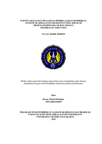 Dzulfaqor, Razan Nuhad (2024) Survei Sarana Dan Prasarana Pembelajaran Pendidikan Jasmani Olahraga Dan Kesehatan Pada Sekolah Menengah Pertama Se-Kecamatan Prambanan Tahun 2024. S1 thesis, Fakultas Ilmu Keolahragaan dan Kesehatan.