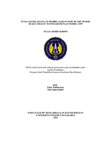 Widhayanto, Irfan (2024) Evaluasi Pelaksanaan Pembelajaran PJOK di SMP se-Kecamatan Wonosari Dengan Model CIPP. S1 thesis, Fakultas Ilmu Keolahragaan dan Kesehatan.