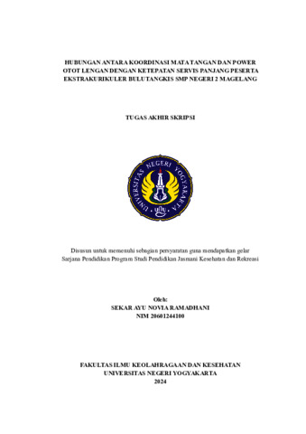 Penelitian ini bertujuan untuk mengetahui ada tidaknya hubungan antara koordinasi mata tangan dan power otot lengan dengan ketepatan servis panjang pada peserta ekstrakurikuler bulutangkis SMP Negeri 2 Magelang. Penelitian ini merupakan penelitian kuantitatif dengan menggunakan metode analisis korelasional product moment dari Karl Pearson. Penelitian ini bertujuan untuk mengetahui derajat atau kekuatan hubungan antara variabel bebas dan variabel terikat, serta dapat digunakan untuk mengetahui besarnya pengaruh variabel bebas yang lebih dari satu secara bersama-sama dengan variabel terikat. Populasi penelitian terdiri dari seluruh siswa yang mengikuti ekstrakurikuler bulutangkis di SMP Negeri 2 Magelang. Sampel penelitian yaitu 15 peserta didik yang aktif mengikuti ekstrakurikuler bulutangkis. Teknik pengumpulan data penelitian menggunakan tes dan pengukuran. Instrumen penelitian koordinasi mata tangan menggunakan tes hand eye coordination test dengan validitas sebesar 0,751 dan reliabilitas sebesar 0,689. Instrumen penelitian untuk power otot lengan diukur menggunakan tes two hand medicine ball put dengan validitas sebesar 0,77 dan reliabilitas sebesar 0,81. Sedangkan instrumen penelitian untuk servis panjang menggunakan tes servis panjang (long service test) dengan validitas sebesar 0,54 dan reliabilitas sebesar 0,77. Teknik analisis data untuk uji hipotesis menggunakan uji analisis korelasi dengan product moment dan uji analisis regresi sederhana maupun berganda dengan uji F, serta melalui uji prasyarat normalitas dan linearitas. Hasil penelitian ini menunjukkan bahwa dari hasil analisis data diperoleh nilai Fhitung 20,381 > Ftabel 3,81 dan signifikansi 0,001 < 0,05 maka H0 ditolak. Karena H0 ditolak maka Ha3 diterima, yang berarti terdapat hubungan antara koordinasi mata tangan dan power otot lengan dengan ketepatan servis panjang peserta ekstrakurikuler bulutangkis SMP Negeri 2 Magelang. Dengan demikian dapat disimpulkan terdapat hubungan yang signifikan antara koordinasi mata tangan dan power otot lengan dengan ketepatan servis panjang peserta ekstrakurikuler bulutangkis SMP Negeri 2 Magelang. Keadaan ini menunjukkan bahwa semakin baik koordinasi mata tangan dan power otot lengan maka semakin baik pula hasil ketepatan servis panjang dalam permainan bulutangkis.