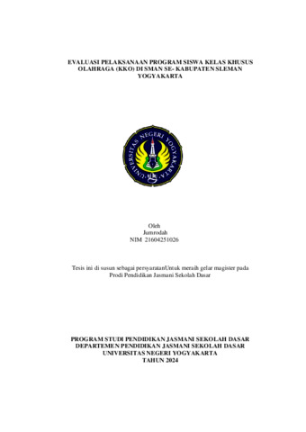 Jumrodah, Jumrodah (2024) Evaluasi Pelaksanaan Program Siswa Kelas Khusus Olahraga (KKO) di SMAN Se-Kabupaten Sleman Yogyakarta. S1 thesis, Fakultas Ilmu Keolahragaan dan Kesehatan.