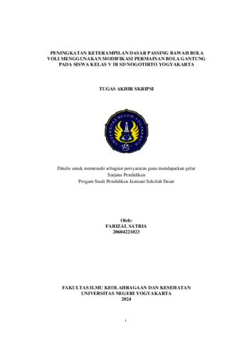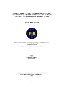 Satria, Farizal (2024) Peningkatan Keterampilan Dasar Passing Bawah Bola Voli Menggunakan Modifikasi Permainan Bola Gantung Pada Siswa Kelas V di SD Nogotirto Yogyakarta. S1 thesis, Fakultas Ilmu Keolahragaan dan Kesehatan.