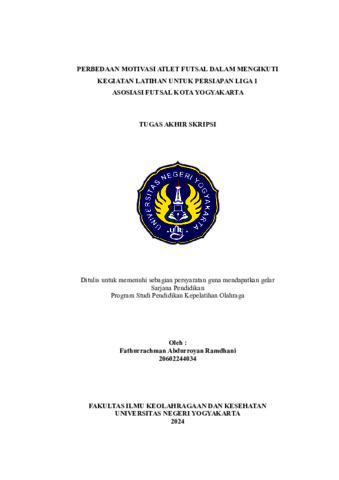 Ramdhani, Fathurrachman Abdurroyan (2024) Perbedaan Motivasi Atlet Futsal Dalam Mengikuti Kegiatan Latihan Untuk Persiapan Liga 1 Asosiasi Futsal Kota Yogyakarta. S1 thesis, Fakultas Ilmu Keolahragaan dan Kesehatan.