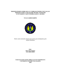 Saputra, Davit Alan (2024) Persepsi Peserta Didik Kelas X Terhadap Model TGfU Dalam Permainan Bola Voli di SMK Negeri 1 Wonosari Gunungkidul Tahun Pembelajaran 2023/2024. S1 thesis, Fakultas Ilmu Keolahragaan dan Kesehatan.