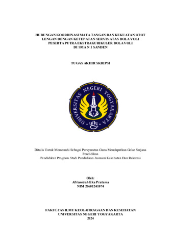 Pratama, Afriansyah Eka (2024) Hubungan Koordinasi Mata Tangan dan Kekuatan Otot Lengan dengan Ketepatan Servis Atas Bola Voli Peserta Putra Ekstrakurikuler Bola Voli di SMA N 1 Sanden. S1 thesis, Fakultas Ilmu Keolahragaan dan Kesehatan.