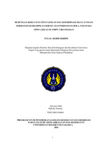| Uncontrolled Keywords: | ubungan, kekuatan otot lengan, mata-tangan, keterampilan servis atas, bola voli |