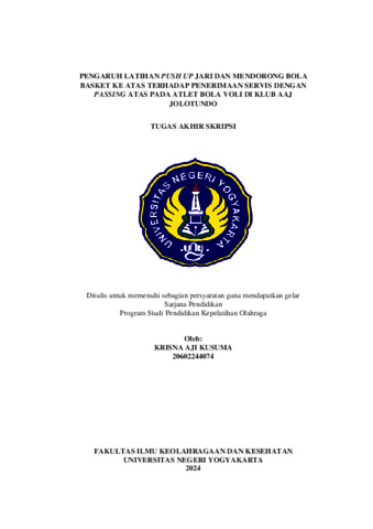 Kusuma, Krisna Aji (2024) Pengaruh Latihan Push Up Jari dan Mendorong Bola Basket ke Atas Terhadap Penerimaan Servis Dengan Passing Atas Pada Atlet Bola Voli di Klub AAJ Jolotundo. S1 thesis, Fakultas Ilmu Keolahragaan dan Kesehatan.