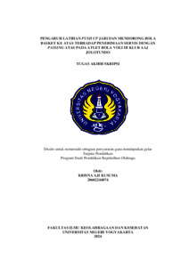 Penelitian ini bertujuan untuk mengetahui pengaruh latihan push up jari dan mendorong bola basket keatas terhadap penerimaan servis dengan passing atas pada atlet bola voli di klub AAJ Jolotundo. Desain yang digunakan dalam penelitian ini adalah “Two Groups PretestPosttest Design». Metode yang digunakan adalah eksperimen dengan teknik pengambilan datanya menggunakan tes penerimaan servis dengan passing atas bola voli. Subjek dalam penelitian ini adalah atlet bola voli di klub AAJ Jolotundo yang berjumlah 30 anak. Teknik analisis data menggunakan uji t paired sampel t test. Hasil analisis pada uji hipotesis pertama diperoleh nilai thitung (4,212) > t tabel (2,144), dapat disimpulkan ada pengaruh latihan push up jari terhadap penerimaan servis dengan passing atas pada atlet bola voli di Klub AAJ Jolotundo”. Hasil analisis pada uji hipotesis kedua diperoleh nilai thitung (4,794) > t tabel (2,144), disimpulkan ada pengaruh latihan mendorong bola basket keatas terhadap penerimaan servis dengan passing atas pada atlet bola voli di Klub AAJ Jolotundo. Hasil analisis uji hipotesis ke tiga diperoleh nilai nilai thitung (2,029) > t tabel (2,048), dan nilai p (0,052) < dari 0,05, hasil tersebut dapat disimpulkan tidak ada perbedaan yang signifikan antara latihan push up jari dengan mendorong bola basket keatas. Perbedaaan hasil persentase peningkatan menunjukan jika hasil dengan latihan push up jari (47,06 %) mempunyai peningkatan lebih baik dibandingkan dengan latihan mendorong bola basket keatas (28,09 %).