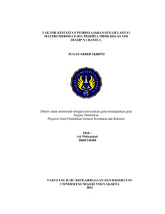 Widyantari, Ari (2024) Faktor Kesulitan Pembelajaran Senam Lantai Materi Meroda Pada Peserta Didik Kelas VIII di SMP N 1 Bantul. S1 thesis, Fakultas Ilmu Keolahragaan dan Kesehatan.