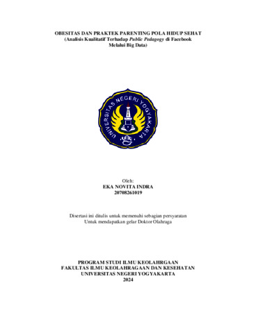 Indra, Eka Novita (2024) Obesitas dan Praktek Parenting Pola Hidup Sehat (Analisis Kualitatif Terhadap Public Pedagogy di Facebook Melalui Big Data). S3 thesis, Fakultas Ilmu Keolahragaan dan Kesehatan.