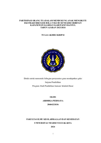 Permana, Ardhika (2024) Partisipasi Orang Tua Dalam Mendukung Anak Mengikuti Ekstrakurikuler Bola Voli di SD Negeri Sribitan Kapanewon Kasihan Kabupaten Bantul Tahun Ajaran 2023/2024. S1 thesis, Fakultas Ilmu Keolahragaan dan Kesehatan.