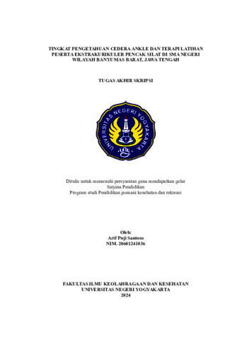 Santoso, Arif Puji (2024) Tingkat Pengetahuan Cedera Ankle dan Terapi Latihan Peserta Ekstrakurikuler Pencak Silat di SMA Negeri Wilayah Banyumas Barat, Jawa Tengah. S1 thesis, Fakultas Ilmu Keolahragaan dan Kesehatan.