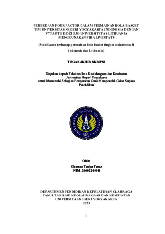 Faraz, Ghassan Tadya (2024) Perbedaan Four Factors Dalam Permainan Bola Basket Tim Universitas Negeri Yogyakarta Dengan Vytauto Didžiojo Universitetas Menggunakan FIBA LIVESTATS. S1 thesis, Fakultas Ilmu Keolahragaan dan Kesehatan.