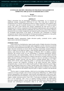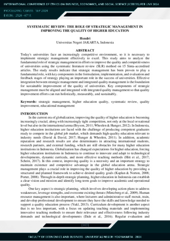 Hendri, Hendri SYSTEMATIC REVIEW: THE ROLE OF STRATEGIC MANAGEMENT IN IMPROVING THE QUALITY OF HIGHER EDUCATION. International Conference of Ethics on Business, Economics, and Social Science (ICEBESS), 2024 (1). ISSN 2528-671X