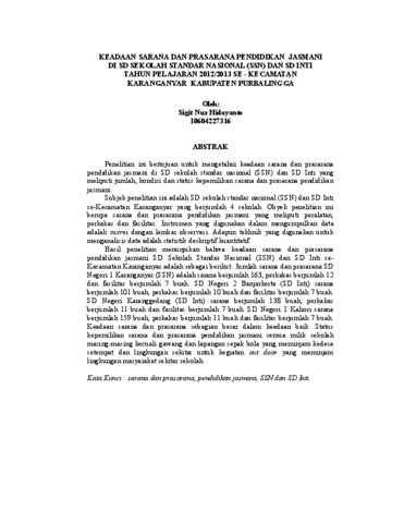 Sigit Nur Hidayanto, Sn (2012) KEADAAN SARANA DAN PRASARANA PENDIDIKAN JASMANI DI SD SEKOLAH STANDAR NASIONAL (SSN) DAN SD INTI TAHUN PELAJARAN 2012/2013 SE-KECAMATAN KARANGANYAR KABUPATEN PURBALINGGA. S1 thesis, UNY.