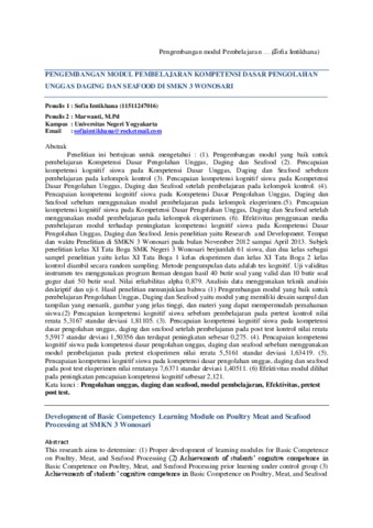 SOFIA , IMTIKHANA (2013) “PENGEMBANGAN MODUL PEMBELAJARAN KOMPETENSI DASAR PENGOLAHAN UNGGAS DAGING DAN SEAFOOD DI SMKN 3 WONOSARI”. S1 thesis, Fakultas Teknik.