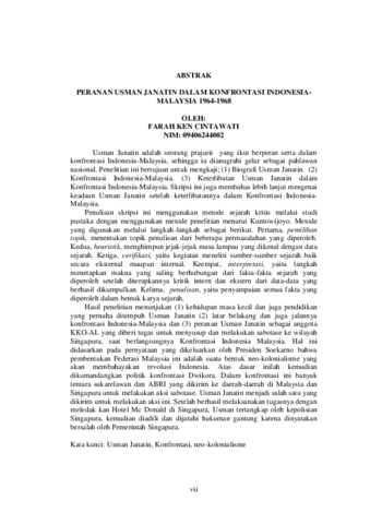 FARAH KEN, CINTAWATI (2013) PERANAN USMAN JANATIN DALAM KONFRONTASI INDONESIAMALAYSIA 1964-1968. S1 thesis, uny.