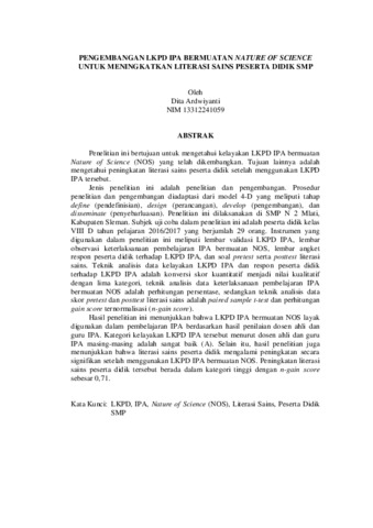 Ardwiyanti, Dita (2017) PENGEMBANGAN LKPD IPA BERMUATAN NATURE OF SCIENCE UNTUK MENINGKATKAN LITERASI SAINS PESERTA DIDIK SMP. S1 thesis, FMIPA UNY.