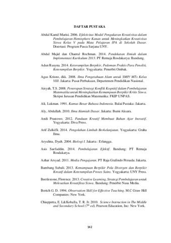 | Uncontrolled Keywords: | Science student activity sheet, Problem Based Learning model, creative thinking skill |